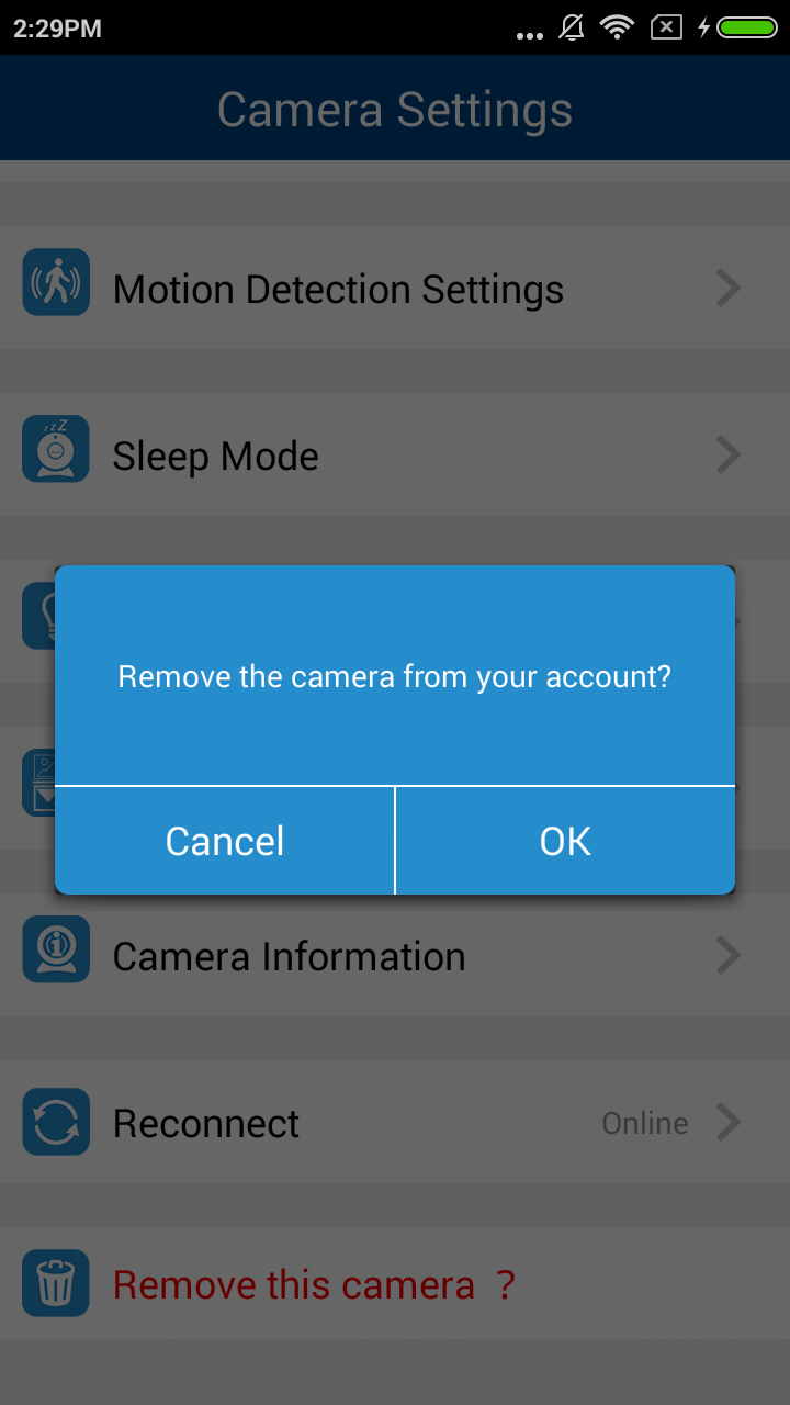 1. When the screen displays Remove the camera from your account?, tap OK.